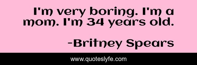 This page presents the quote "I'm very boring. I'm a mom. I'm 34 years old.". Author of this quote is Britney Spears. This quote is about boring, old, years,.