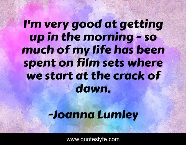 This page presents the quote "I'm very good at getting up in the morning - so much of my life has been spent on film sets where we start at the crack of dawn.". Author of this quote is Joanna Lumley. This quote is about start, life, good,.