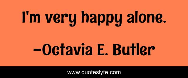 This page presents the quote "I'm very happy alone.". Author of this quote is Octavia E. Butler. This quote is about very, happy,.