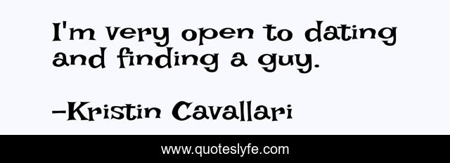 This page presents the quote "I'm very open to dating and finding a guy.". Author of this quote is Kristin Cavallari. This quote is about finding, guy, open,.