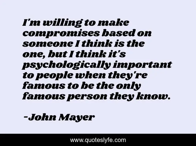 This page presents the quote "I'm willing to make compromises based on someone I think is the one, but I think it's psychologically important to people when they're famous to be the only famous person they know.". Author of this quote is John Mayer. This quote is about think, people,.