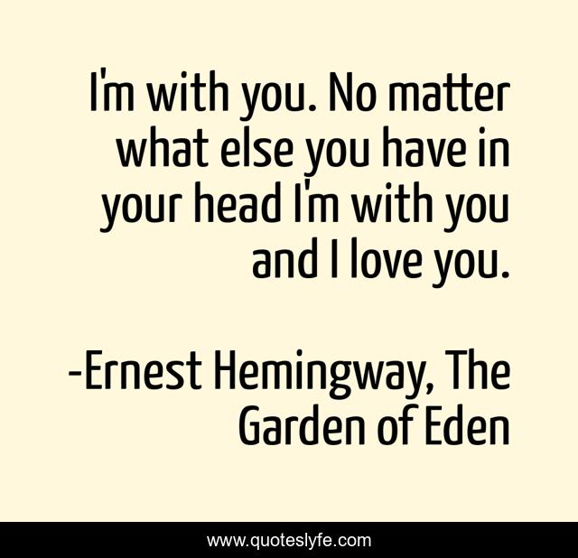 "Ernest Hemingway, The Garden of Eden Quotes." Quoteslyfe.com, 2025. Mon. 08 Dec. 2025. <https://www.quoteslyfe.com/quote/I-m-with-you-No-matter-what-1688>.