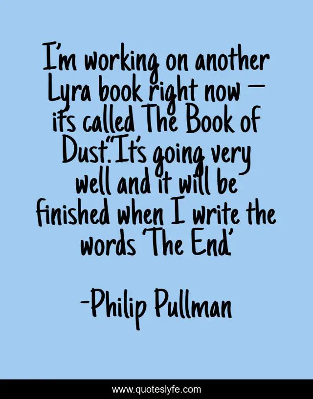 "Philip Pullman Quotes." Quoteslyfe.com, 2025. Sat. 06 Dec. 2025. <https://www.quoteslyfe.com/quote/I-m-working-on-another-Lyra-book-235036>.