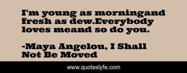 "Maya Angelou, I Shall Not Be Moved Quotes." Quoteslyfe.com, 2025. Mon. 08 Dec. 2025. <https://www.quoteslyfe.com/quote/I-m-young-as-morningand-fresh-as-144035>.