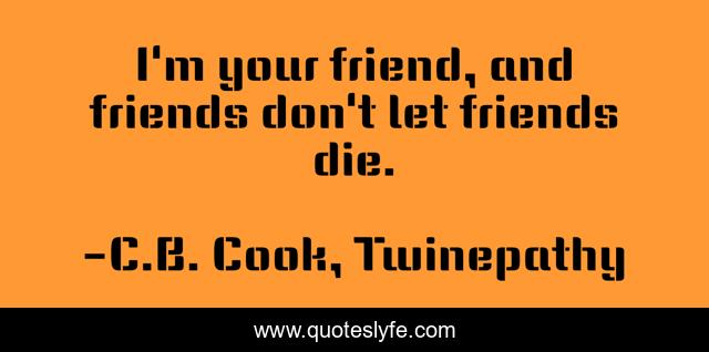 This page presents the quote "I'm your friend, and friends don't let friends die.". Author of this quote is C.B. Cook, Twinepathy. This quote is about humor, friends, friendship, quotes,.