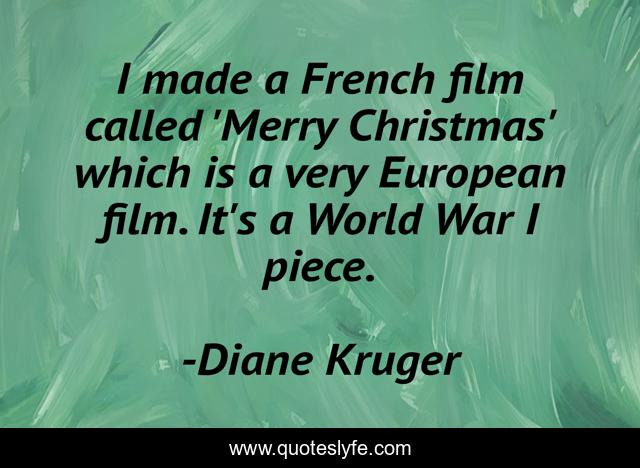 This page presents the quote "I made a French film called 'Merry Christmas' which is a very European film. It's a World War I piece.". Author of this quote is Diane Kruger. This quote is about world war i, world, war,.