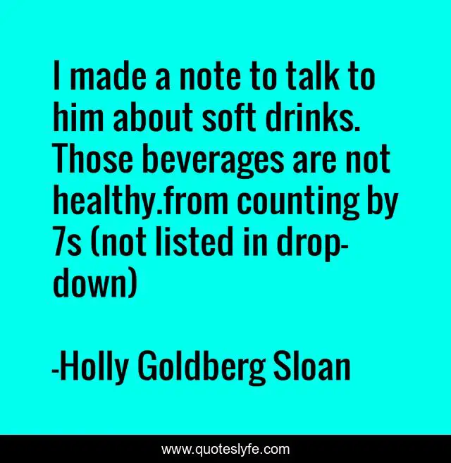 This page presents the quote "I made a note to talk to him about soft drinks. Those beverages are not healthy.from counting by 7s (not listed in drop-down)". Author of this quote is Holly Goldberg Sloan. This quote is about willow, counting-by-7s, soft-drinks, health, nutrition,.