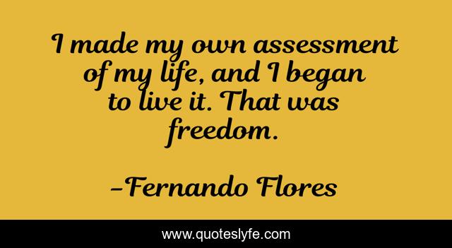 This page presents the quote "I made my own assessment of my life, and I began to live it. That was freedom.". Author of this quote is Fernando Flores. This quote is about life, my life, live,.