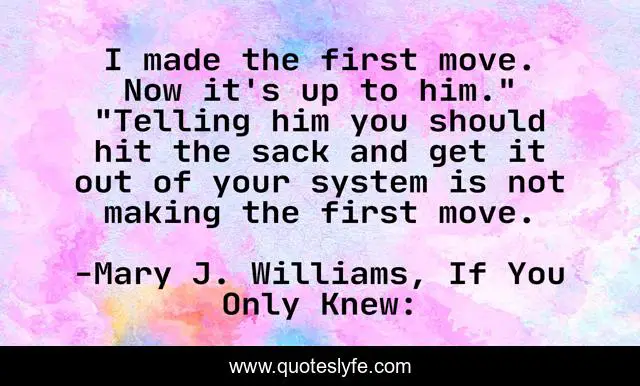"Mary J. Williams, If You Only Knew: Quotes." Quoteslyfe.com, 2025. Fri. 05 Dec. 2025. <https://www.quoteslyfe.com/quote/I-made-the-first-move-Now-it-154874>.