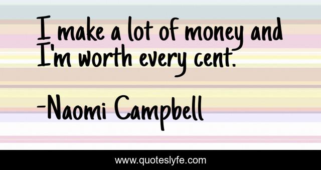 This page presents the quote "I make a lot of money and I'm worth every cent.". Author of this quote is Naomi Campbell. This quote is about worth, lot,.