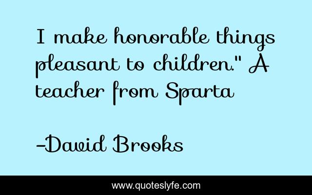 This page presents the quote "I make honorable things pleasant to children." A teacher from Sparta". Author of this quote is David Brooks. This quote is about education, character, encouragement,.