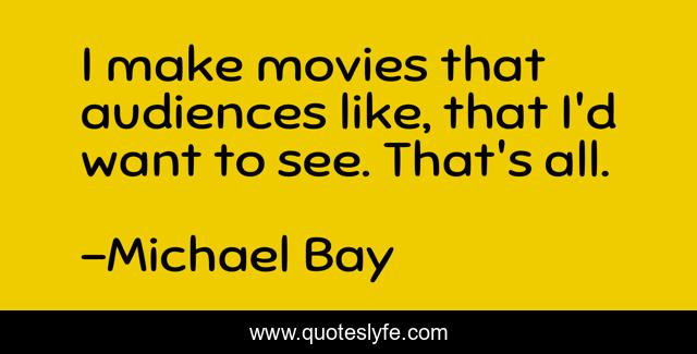 "Michael Bay Quotes." Quoteslyfe.com, 2025. Fri. 05 Dec. 2025. <https://www.quoteslyfe.com/quote/I-make-movies-that-audiences-like-that-313584>.