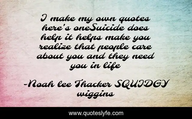 I make my own quotes here's oneSuicide does help it helps make you realize that people care about you and they need you in life