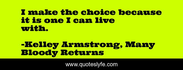 This page presents the quote "I make the choice because it is one I can live with.". Author of this quote is Kelley Armstrong, Many Bloody Returns. This quote is about vampire, cassandra-ducharme,.