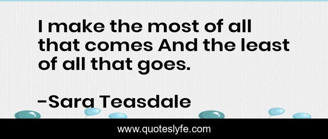 "Sara Teasdale Quotes." Quoteslyfe.com, 2025. Fri. 05 Dec. 2025. <https://www.quoteslyfe.com/quote/I-make-the-most-of-all-that-261280>.