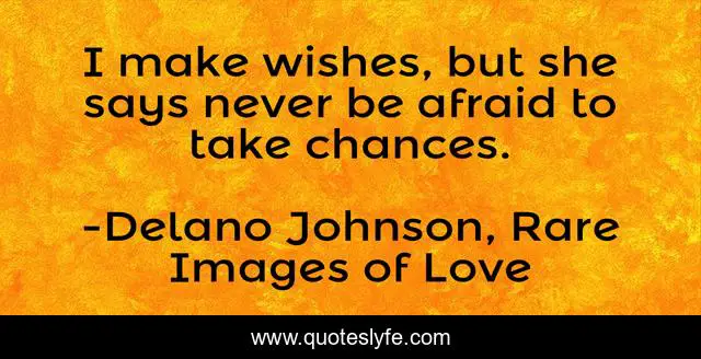 This page presents the quote "I make wishes, but she says never be afraid to take chances.". Author of this quote is Delano Johnson, Rare Images of Love. This quote is about chances, wishes, poetry,.