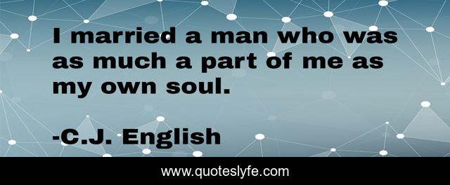 This page presents the quote "I married a man who was as much a part of me as my own soul.". Author of this quote is C.J. English. This quote is about true-love, romance-book, love, engagement, soulmates, romance, marriage, love-story, wedding,.