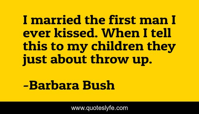This page presents the quote "I married the first man I ever kissed. When I tell this to my children they just about throw up.". Author of this quote is Barbara Bush. .