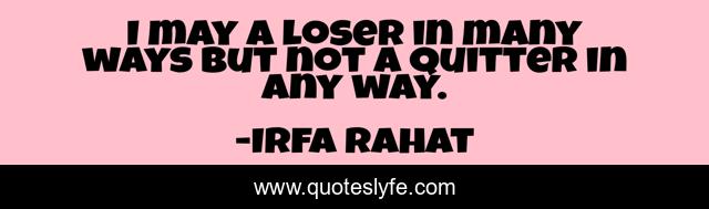 This page presents the quote "I may a loser in many ways but not a quitter in any way.". Author of this quote is Irfa Rahat. This quote is about lifelesson, quitter, loser, quotes-to-live-by,.