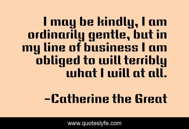 This page presents the quote "I may be kindly, I am ordinarily gentle, but in my line of business I am obliged to will terribly what I will at all.". Author of this quote is Catherine the Great. .