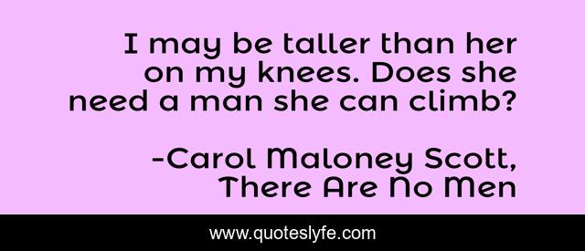 This page presents the quote "I may be taller than her on my knees. Does she need a man she can climb?". Author of this quote is Carol Maloney Scott, There Are No Men. This quote is about romance, dating, humor,.