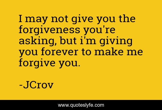 "JCrov Quotes." Quoteslyfe.com, 2025. Fri. 05 Dec. 2025. <https://www.quoteslyfe.com/quote/I-may-not-give-you-the-forgiveness-122205>.