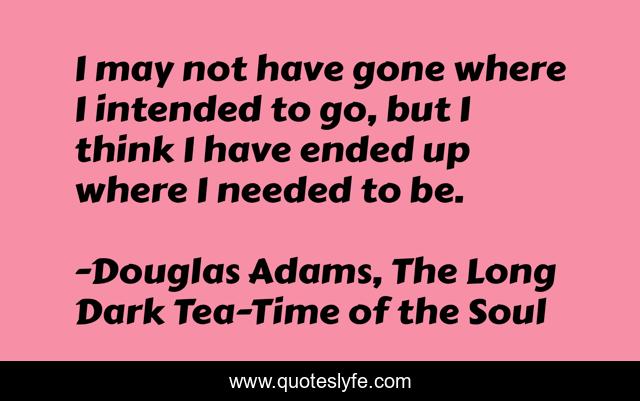 This page presents the quote "I may not have gone where I intended to go, but I think I have ended up where I needed to be.". Author of this quote is Douglas Adams, The Long Dark Tea-Time of the Soul. This quote is about life, navigation,.