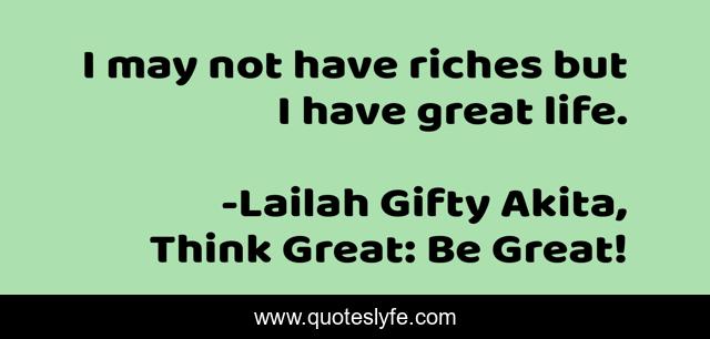 "Lailah Gifty Akita, Think Great: Be Great! Quotes." Quoteslyfe.com, 2025. Mon. 08 Dec. 2025. <https://www.quoteslyfe.com/quote/I-may-not-have-riches-but-I-80447>.