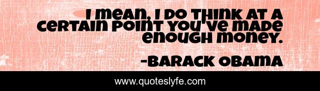 This page presents the quote "I mean, I do think at a certain point you've made enough money.". Author of this quote is Barack Obama. This quote is about think, mean,.