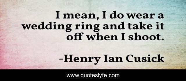 This page presents the quote "I mean, I do wear a wedding ring and take it off when I shoot.". Author of this quote is Henry Ian Cusick. This quote is about ring, wedding ring, mean,.