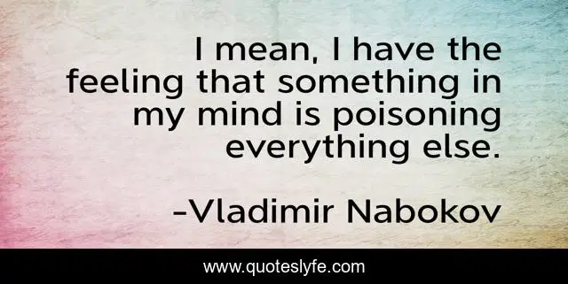 This page presents the quote "I mean, I have the feeling that something in my mind is poisoning everything else.". Author of this quote is Vladimir Nabokov. This quote is about poisoning, vladimir-nabokov, mind, lolita, poison,.