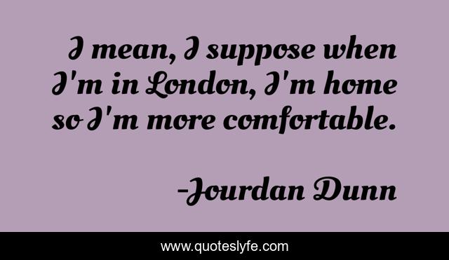 This page presents the quote "I mean, I suppose when I'm in London, I'm home so I'm more comfortable.". Author of this quote is Jourdan Dunn. This quote is about mean, london, comfortable,.