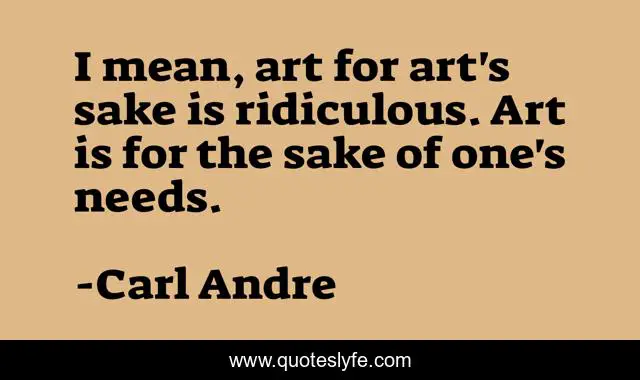 This page presents the quote "I mean, art for art's sake is ridiculous. Art is for the sake of one's needs.". Author of this quote is Carl Andre. This quote is about needs, ridiculous, mean,.