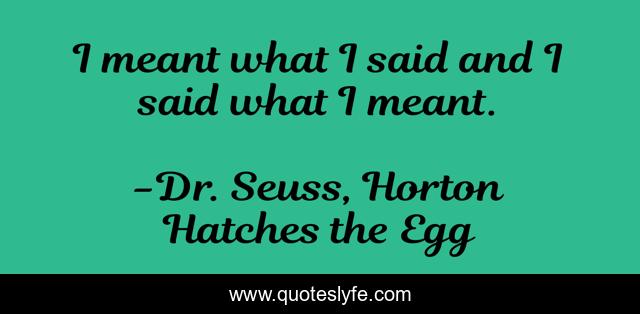 "Dr. Seuss, Horton Hatches the Egg Quotes." Quoteslyfe.com, 2025. Sun. 07 Dec. 2025. <https://www.quoteslyfe.com/quote/I-meant-what-I-said-and-I-165898>.