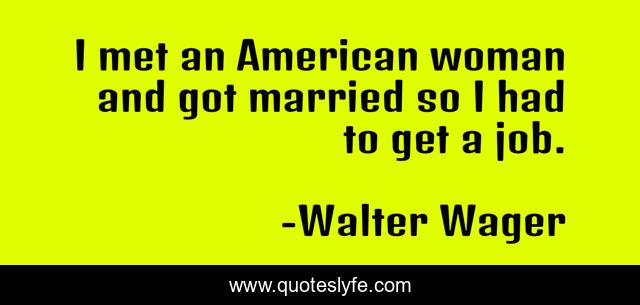 This page presents the quote "I met an American woman and got married so I had to get a job.". Author of this quote is Walter Wager. This quote is about job, woman, american,.