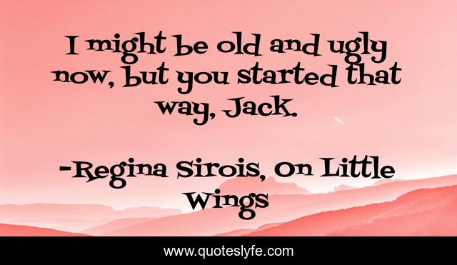 This page presents the quote "I might be old and ugly now, but you started that way, Jack.". Author of this quote is Regina Sirois, On Little Wings. This quote is about age, burn, humor, insult,.