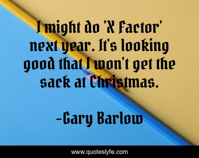 This page presents the quote "I might do 'X Factor' next year. It's looking good that I won't get the sack at Christmas.". Author of this quote is Gary Barlow. This quote is about looking, good, year,.