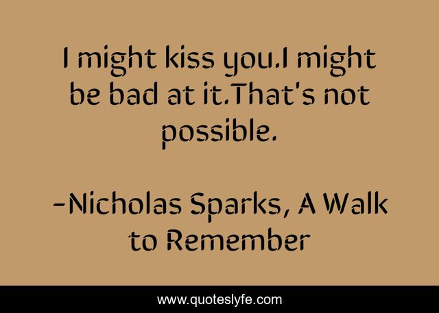This page presents the quote "I might kiss you.I might be bad at it.That's not possible.". Author of this quote is Nicholas Sparks, A Walk to Remember. This quote is about love, affection,.