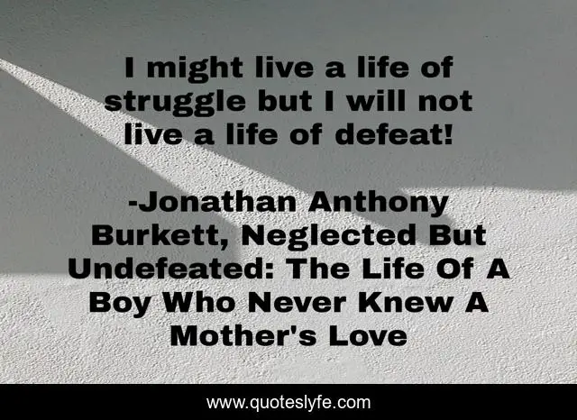 "Jonathan Anthony Burkett, Neglected But Undefeated: The Life Of A Boy Who Never Knew A Mother's Love Quotes." Quoteslyfe.com, 2025. Mon. 08 Dec. 2025. <https://www.quoteslyfe.com/quote/I-might-live-a-life-of-struggle-44832>.