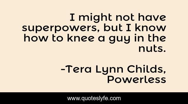 This page presents the quote "I might not have superpowers, but I know how to knee a guy in the nuts.". Author of this quote is Tera Lynn Childs, Powerless. .