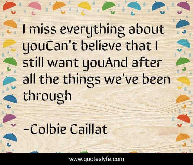 This page presents the quote "I miss everything about youCan't believe that I still want youAnd after all the things we've been through". Author of this quote is Colbie Caillat. This quote is about missing-you, love, song, sad, couples-heartbreak, affection,.