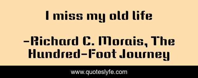 "Richard C. Morais, The Hundred-Foot Journey Quotes." Quoteslyfe.com, 2025. Sat. 06 Dec. 2025. <https://www.quoteslyfe.com/quote/I-miss-my-old-life-143350>.