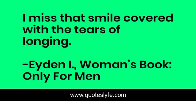 "Eyden I., Woman's Book: Only For Men Quotes." Quoteslyfe.com, 2025. Sat. 06 Dec. 2025. <https://www.quoteslyfe.com/quote/I-miss-that-smile-covered-with-the-194825>.