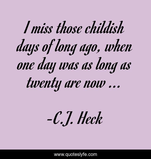 "C.J. Heck Quotes." Quoteslyfe.com, 2025. Sat. 06 Dec. 2025. <https://www.quoteslyfe.com/quote/I-miss-those-childish-days-of-long-184252>.