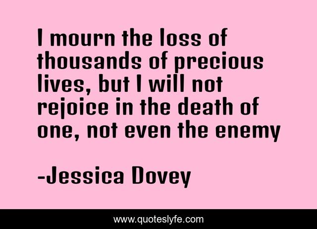 This page presents the quote "I mourn the loss of thousands of precious lives, but I will not rejoice in the death of one, not even the enemy". Author of this quote is Jessica Dovey. This quote is about inspirational-attitude, misattrib-martin-luther-king-jr,.