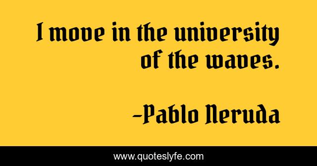 This page presents the quote "I move in the university of the waves.". Author of this quote is Pablo Neruda. This quote is about spiritual, nature,.