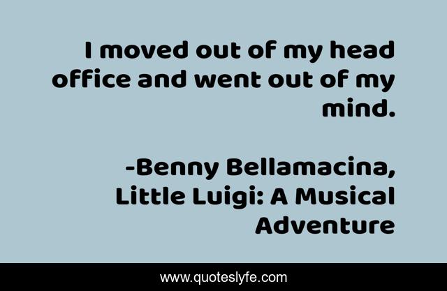 "Benny Bellamacina, Little Luigi: A Musical Adventure Quotes." Quoteslyfe.com, 2025. Sun. 07 Dec. 2025. <https://www.quoteslyfe.com/quote/I-moved-out-of-my-head-office-256396>.