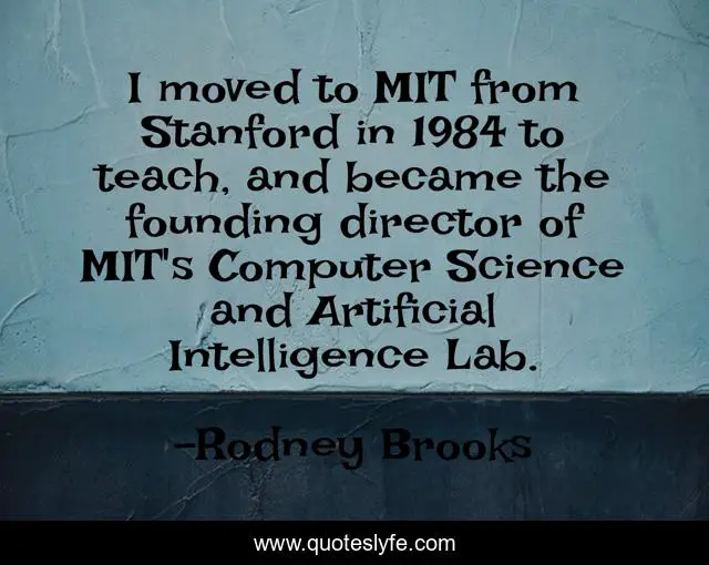 This page presents the quote "I moved to MIT from Stanford in 1984 to teach, and became the founding director of MIT's Computer Science and Artificial Intelligence Lab.". Author of this quote is Rodney Brooks. This quote is about science, computer science,.