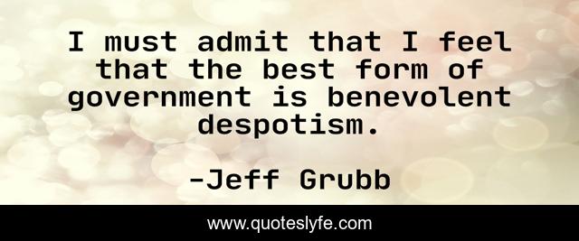 This page presents the quote "I must admit that I feel that the best form of government is benevolent despotism.". Author of this quote is Jeff Grubb. This quote is about politics, government, despotism, mengsk,.