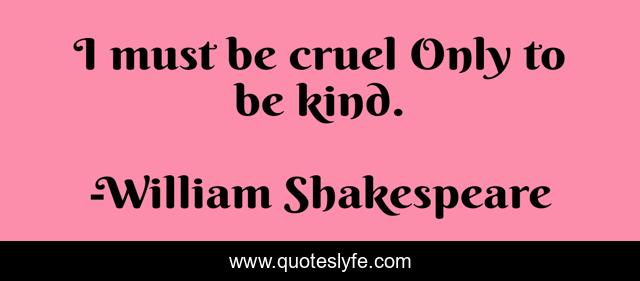 This page presents the quote "I must be cruel Only to be kind.". Author of this quote is William Shakespeare. This quote is about cruelty, wickedness,.